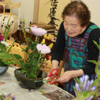 月2回の活動で季節に合わせた花材を講師の指導の下活けています。活けた後はご自身の作品ですので水やりや片付けまで行います。 -