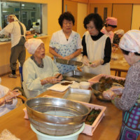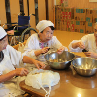 入所者と職員で作りたいものを決め料理します。今までにカレーライス、巻きずし等を作りました。また、柏餅や十五夜の団子作りをしておやつに提供しています。 -